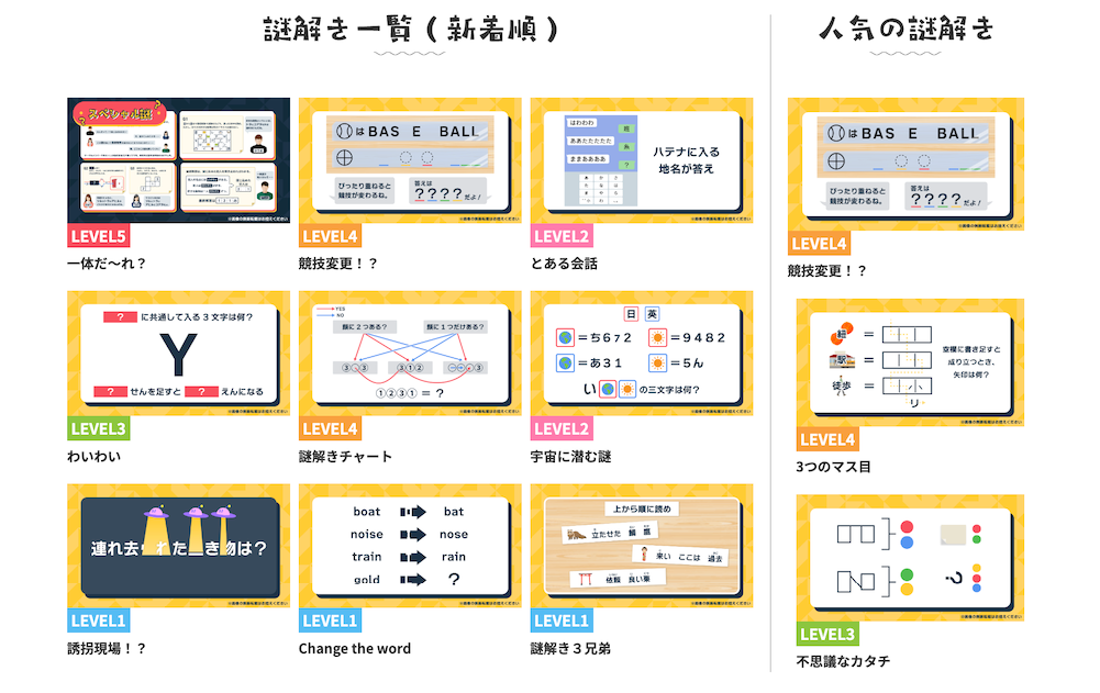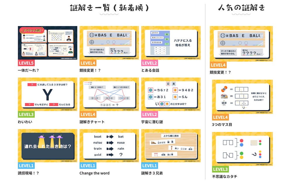 謎解きを一問から手軽に無料で楽しめる謎解き問題集を公開。
